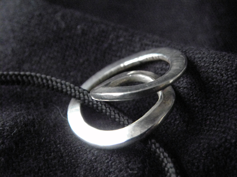 Deze oneindig ronde vorm heeft z’n speciale vorm gekregen door het gebruik van de wals en verschillende tangen. Het sieraad is 2,5 centimeter in doorsnede.